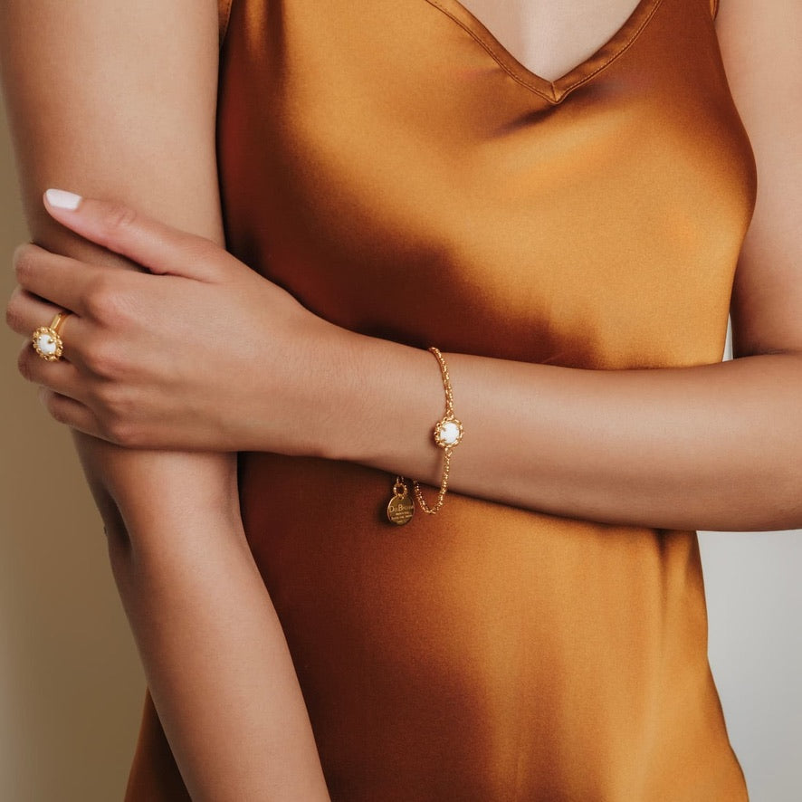 Each piece is crafted to be worn effortlessly: jewelry that surprises with its airy elegance, meticulous craftsmanship, and thoughtful proportions. The result is a collection that brings a sense of joyful sophistication, adding a gentle sparkle and a touch of color to any look.