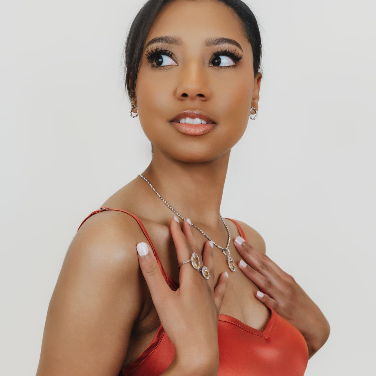 The Drop collection embodies DelBrenna's philosophy, blending vibrant, drop-cut gemstones with refined geometry and timeless elegance.