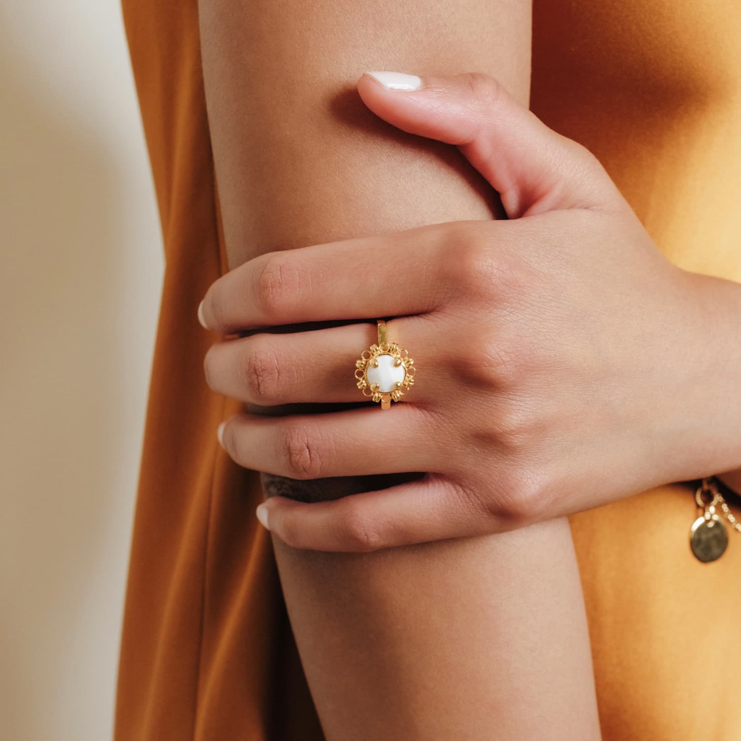 Each piece is crafted to be worn effortlessly: jewelry that surprises with its airy elegance, meticulous craftsmanship, and thoughtful proportions. The result is a collection that brings a sense of joyful sophistication, adding a gentle sparkle and a touch of color to any look.
