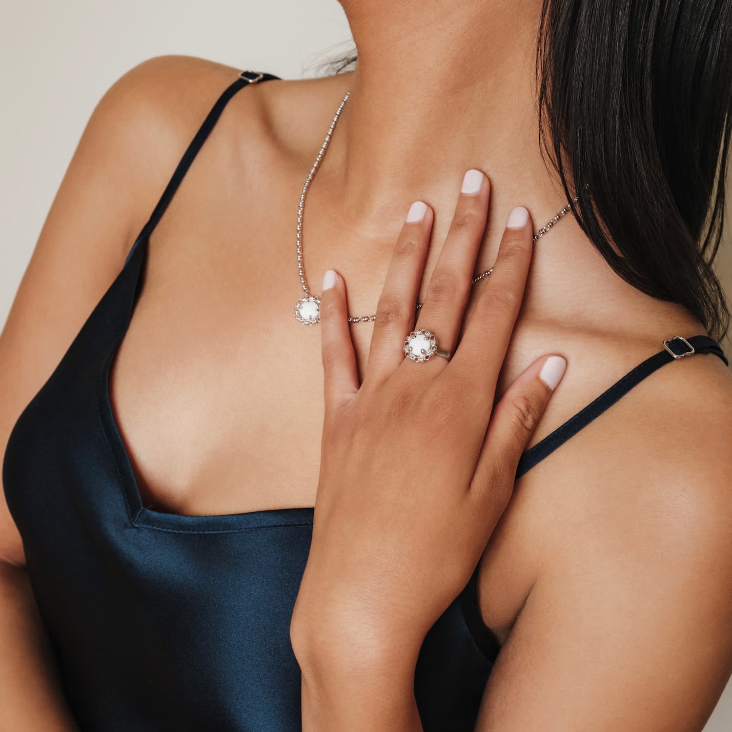 Each piece is crafted to be worn effortlessly: jewelry that surprises with its airy elegance, meticulous craftsmanship, and thoughtful proportions. The result is a collection that brings a sense of joyful sophistication, adding a gentle sparkle and a touch of color to any look.
